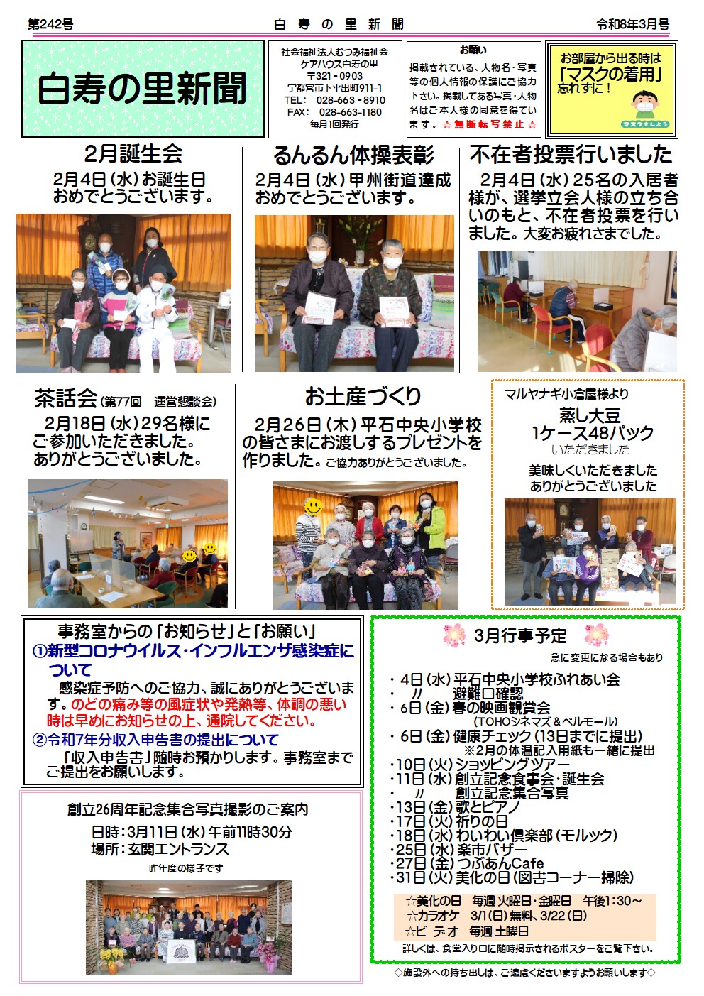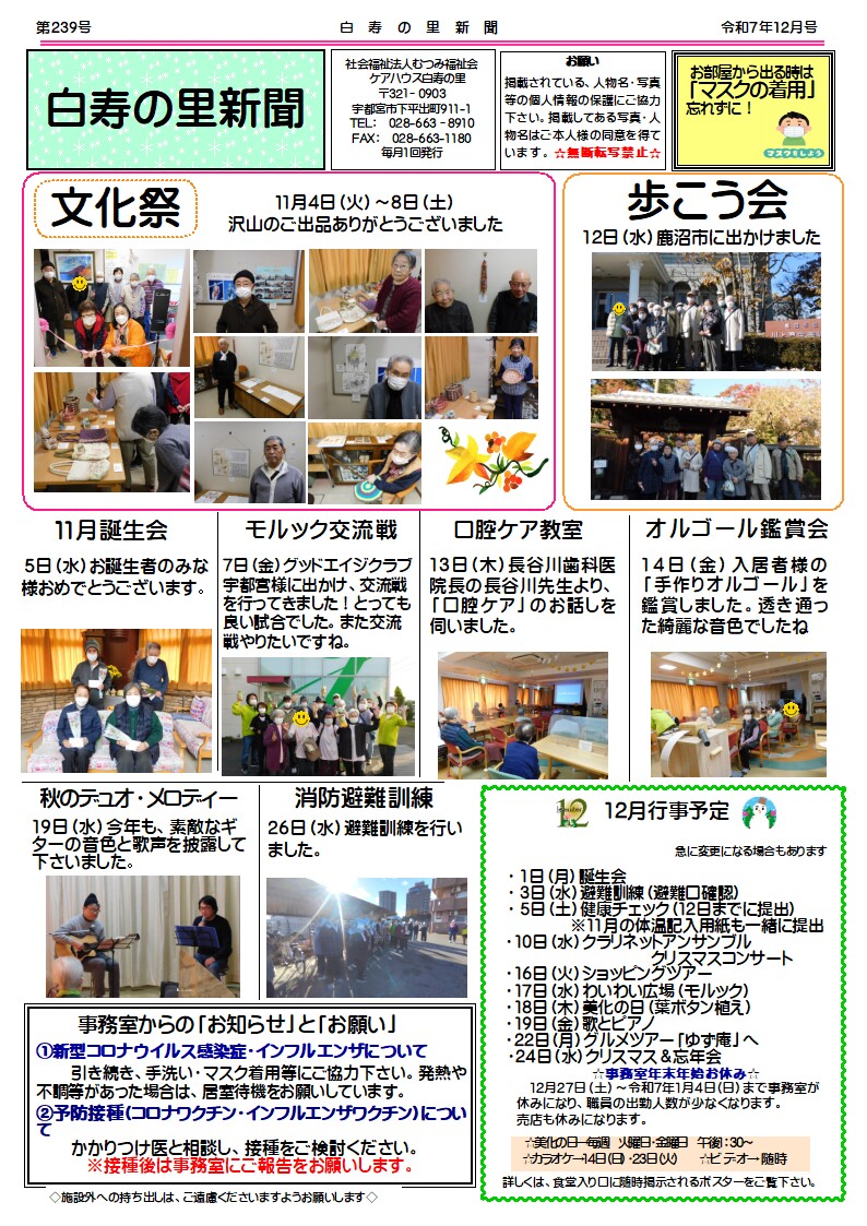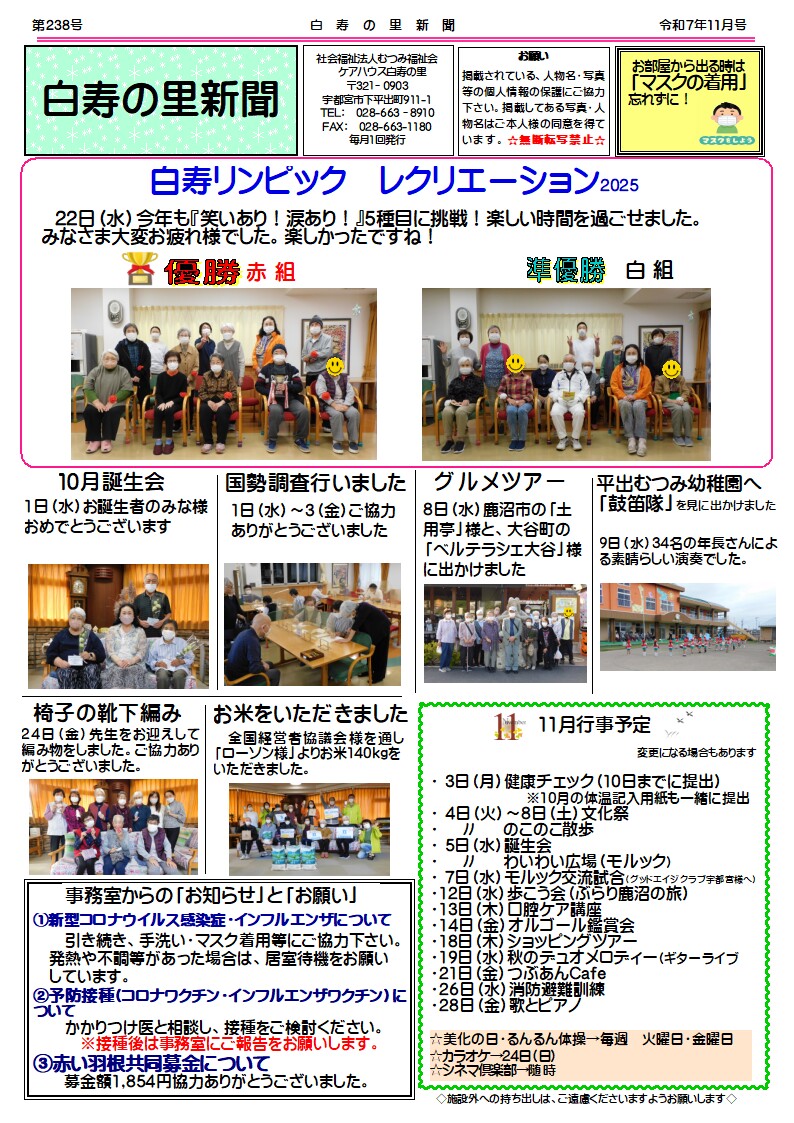 今後とも、白寿の里ホームページ・ブログをよろしくお願いいたします。