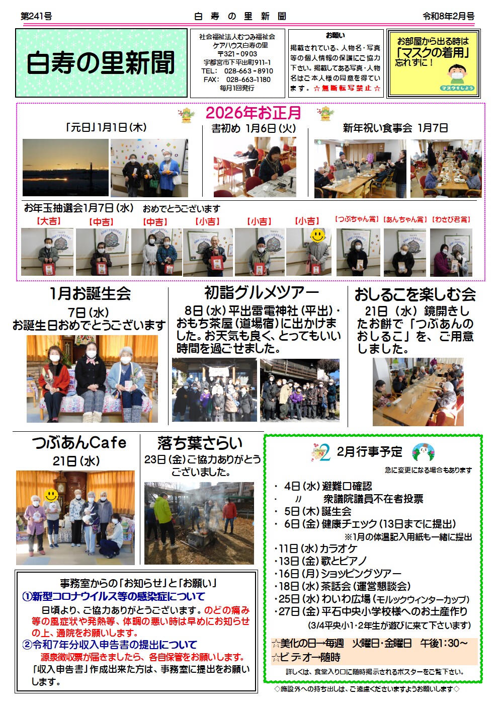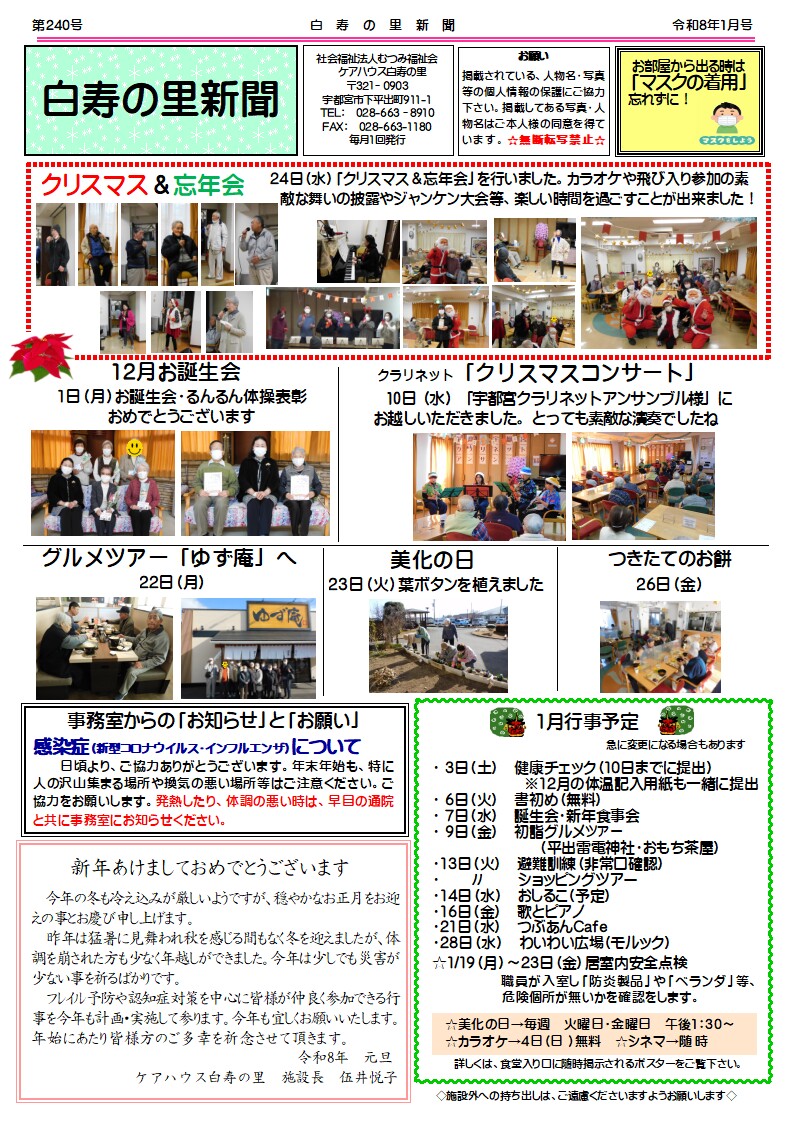 今後とも、白寿の里ホームページ・ブログをよろしくお願いいたします。